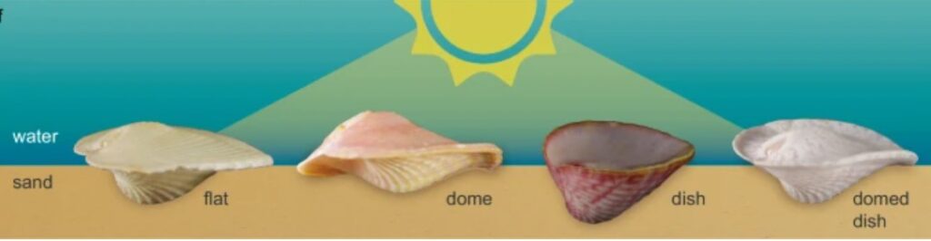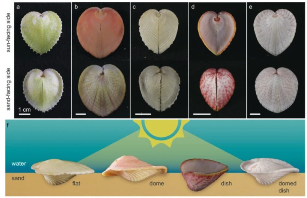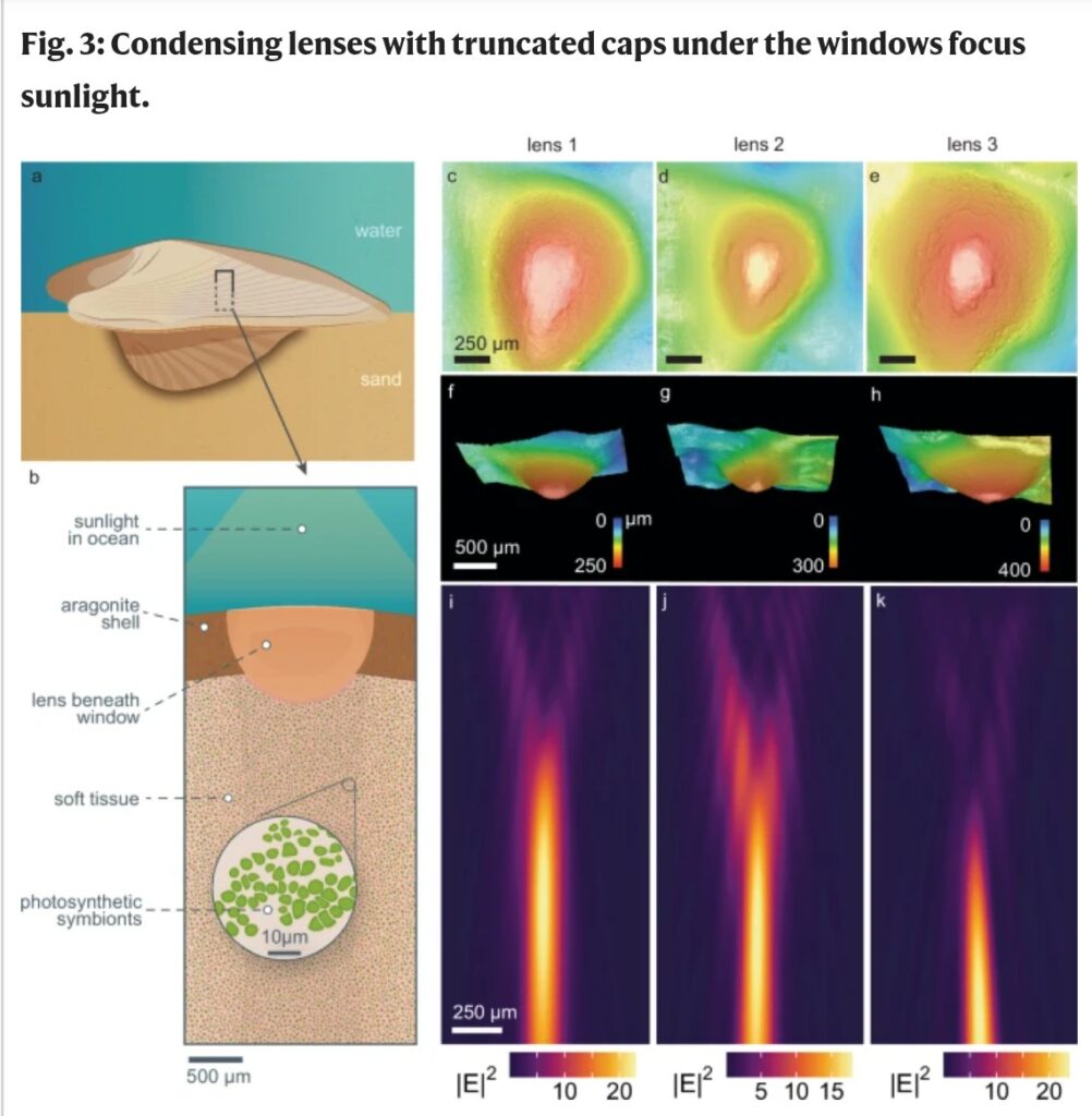 Heart cockle এর যে অংশটি জলের দিকে থাকে তার ভেতরের স্তরটি লক্ষ্য করলে দেখা যায় যে অ্যরাগোনাইট (aragonite) কোশ দিয়ে গঠিত একটি পুরু লেন্স থাকে যা কিছুটা নীচের দিকে ঝুলে থাকে।এর সাহায্যে সূর্য থেকে আসা ক্ষীন আলোকে ও মিথোজীবী শৈবালের সালোকসংশ্লেষ প্রক্রিয়া চালানোর প্রয়োজনীয় আলো থে রুপান্তরিত করতে পারে। সাধারনত লেন্স রশ্মি গুলি কে সমান্তরাল রশ্মি তে convert করে থাকে।